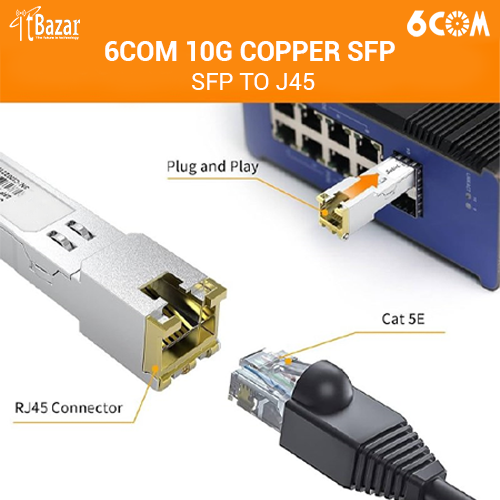 The 6COM 6C-SFP-10G-T copper transceiver module is a high performance integrated duplex data link for