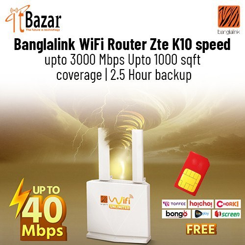 Banglalink WiFi Router Zte K10 speed upto 300 Mbps বাংলালিংক ওয়াইফাই রাউটার ,৩০০ এম.বি.পি.এস স্পিড