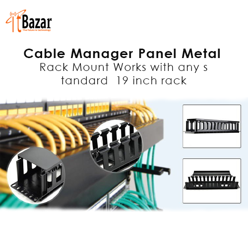 Horizontal Cable Manager, 2U x 6" Deep with Cable Tie-off bottom plate, Single-Sided with Cover
