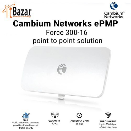 The F300-16 offers a compelling, compact subscriber or point to point solution resilient to interference. Supporting peak throughput greater than 500 Mbps, the Force 300-16 also supports an always on spectrum analyzer.