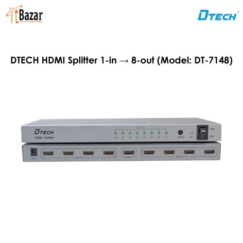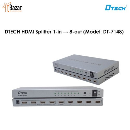 DTECH HDMI Splitter DT7148 1-in → 8-out ডিটেক HDMI স্প্লিটার ১ ইন ৮ আউট
