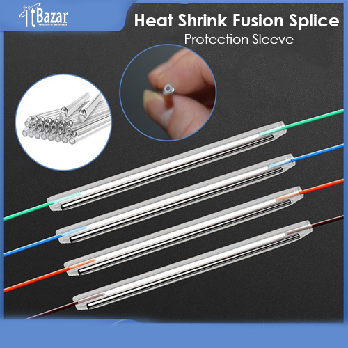 Heat shrinkable fiber optic fusion splice protection sleeve, also called heat shrink protections sleeve,fiber optic protection sleeve, fiber splice protector,with a steel rod (ceramic rod for ribbon fiber) for mechanical protection and a hot fusion insert for sealing.