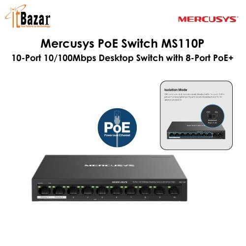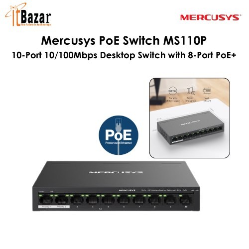 Mercusys PoE Switch MS110P 10-Port 10/100Mbps Desktop Switch with 8-Port PoE+
