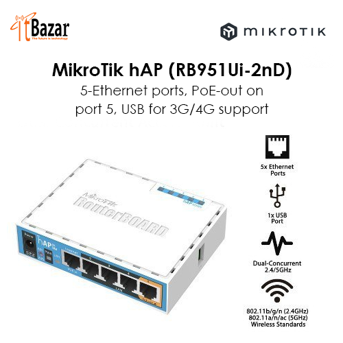 This small home access point is the perfect device for homes or small offices where all you need is a wireless AP and a few wired devices connected. Based on our popular RB951-2n, the new hAP is an improvement in many areas.