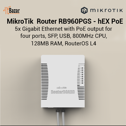 It is affordable, small and easy to use, but at the same time comes with a very powerful 800MHz CPU, capable of all the advanced configurations that RouterOS supports. Less power adapters and cables to worry about! Max current is 1A per port, Ethernet ports are shielded.