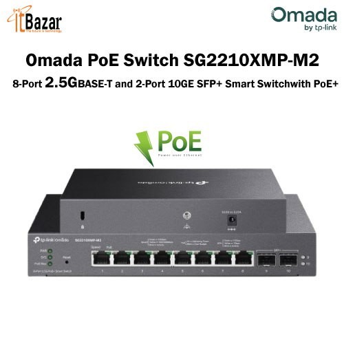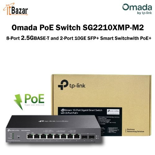 Omada PoE Switch SG2210XMP-M2 8-Port 2.5GBASE-T and 2-Port 10GE SFP+ Smart Switchwith 8-Port PoE+