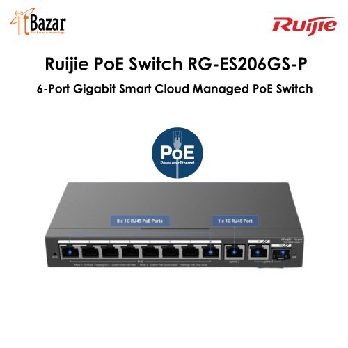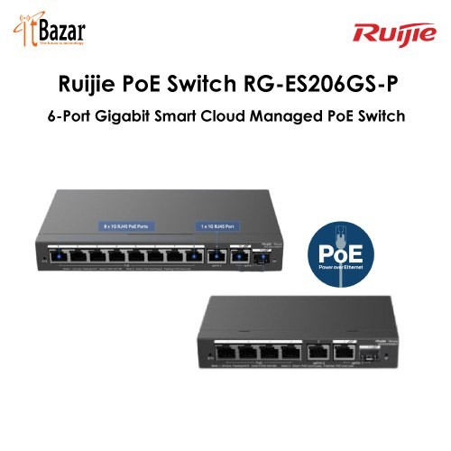 Ruijie PoE Switch RG-ES206GS-P, 6-Port Gigabit Smart Cloud Managed PoE Switch রুইজি ৬পোর্ট ম্যানেজড পি.ও.ই সুইচ (পাওয়ার ওভার ইথারনেট )