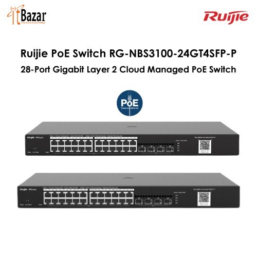 Ruijie PoE Switch RG-NBS3100-24GT4SFP-P, 28-Port Gigabit Layer 2 Cloud Managed PoE Switch রুইজি ২৪পোর্ট ম্যানেজড পি.ও.ই সুইচ (পাওয়ার ওভার ইথারনেট )