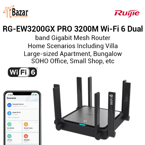 RUIJIE RG-EW3200GX PRO 3200M Wi-Fi 6 Dual-band Gigabit Mesh Router রুইজি RG-EW৩২০০জি এক্স প্রো ওয়াইফাই৬ ডুয়াল ব্যান্ড রাউটার