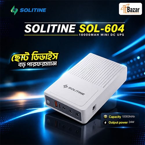 SOL-604 10000mAh Mini UPS is a high-performance, compact power backup solution