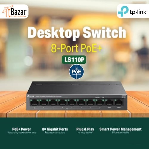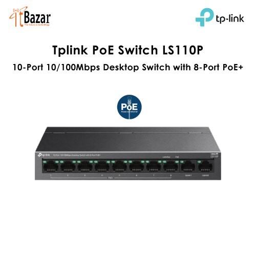Tplink PoE Switch LS110P 10-Port 10/100Mbps Desktop Switch with 8-Port PoE+