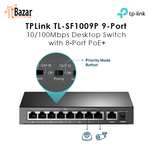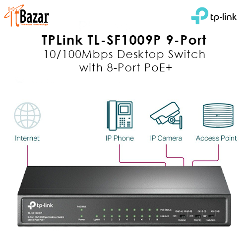 TPLink TL-SF1009P 9-Port 10/100Mbps Desktop Switch with 8-Port PoE+