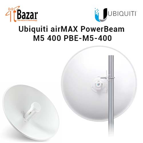 .With an all-in-one design, the Ubiquiti airMAX PowerBeam M5 PBE-M5-400 is meant to function as a Wireless outdoor CPE radio. With a more concentrated, direct signal clients benefit from improved noise immunity to as this bridge is capable of filtering out much of the noise that can degrade the signal. With Ubiquiti’s own inner feed design installation of the PBE-M5-400 has been greatly simplified as there is no longer a need for any cabling. Once installed the included airMAX technology helps network administrators to manage and monitor the network. From intelligent QoS to scalability Ubiquiti has provided the tools necessary to create long range networks offering reliable wireless network access to a large number of clients.