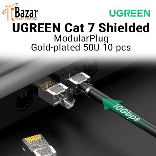 Title: UGREEN 50634 Cat 7 Shielded Modular Plug Gold- plated 50U 10 pcs