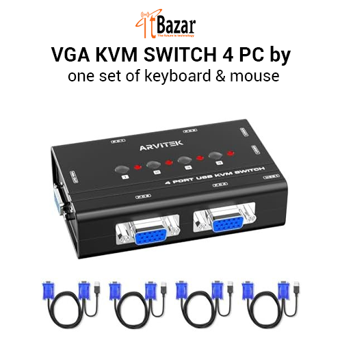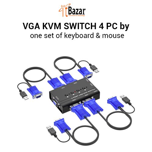 This USB VGA KVM switch 4 port allows you to manage 4 PC by one set of keyboard & mouse. Built with novel 2in1 USB VGA cable (the latest version).