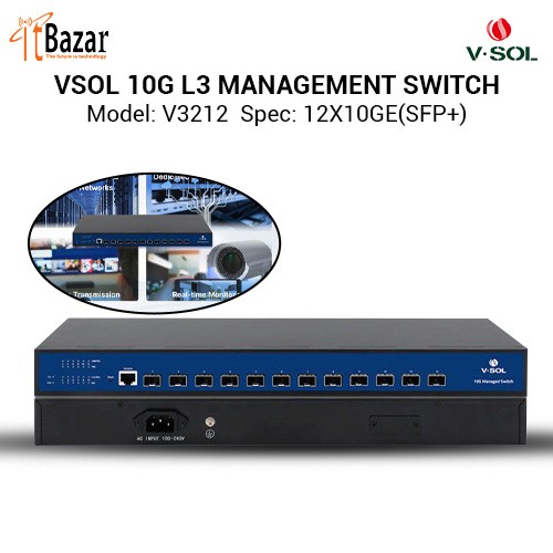 VSOL V3212 switch provides 12 10Gb SFP+ ports and 1 console port, with perfect security control policy and CPU protection policy, toenhancethefault tolerance of the product, to ensure the stable operation of the network and link load balancing. The device supports automaticDoSattackprevention, SNMP, IEEE 802.1q, STP, RSTP and link aggregation. With advanced security features and advanced QoS, it can beusedasacore,distribution or access layer switch with high port density and easy manageability. The product is suitable for metro fiber optic broadband network (telecom, cable TV, network system integration, etc.), broadbandprivatenetwork(finance, government, petroleum, electric power, public security, education and other industries), multimedia transmission (distancelearning,conference TV, video phone, etc.) and real-time monitoring