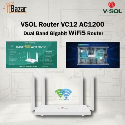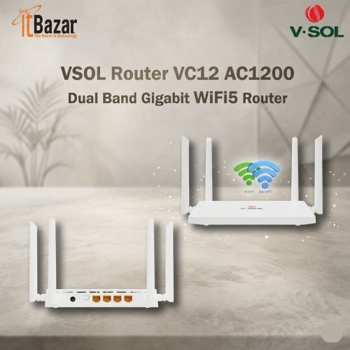 VSOL AC1200 VC12 Dual Band Gigabit WiFi Router ভিসল এসি ১২০০ ডুয়াল ব্যান্ড গিগাবিট রাউটার