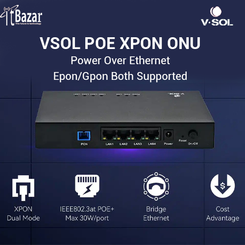 VSOL POE XPON ONU V2820D-1G3FPS ভিসল পি ও ই অনু (পাওয়ার ওভার ইথারনেট) ইপন,জীপন বোথ সাপোর্টেড