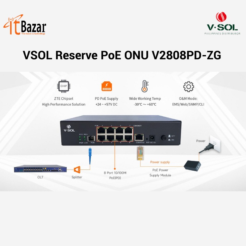 VSOL REVERSE POE ONU V2808PD-ZG