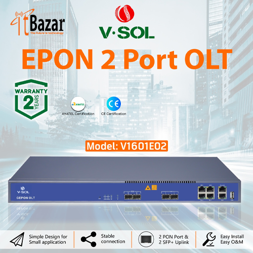 VSOL V1601e02-dp 2Port EPON OLT 10G UPLINK ভি সল ২-পোর্ট ইপন ও এল টি ১০জি আপলিংক