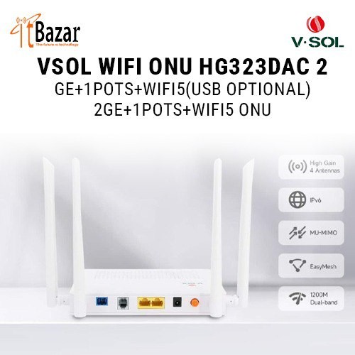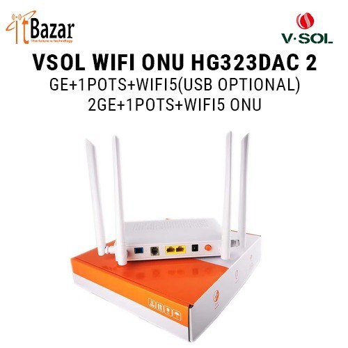 Vsol WiFi ONU HG323DAC 2*GE+1POTS+WiFi5(USB Optional) ভি সল ওয়াইফাই অনু রাউটার।অনু+রাউটার একসাথে। ইপন ,জীপন বোথ সাপোর্ট।