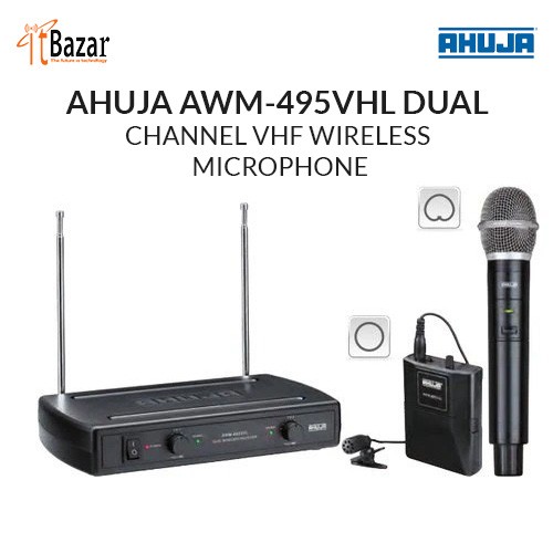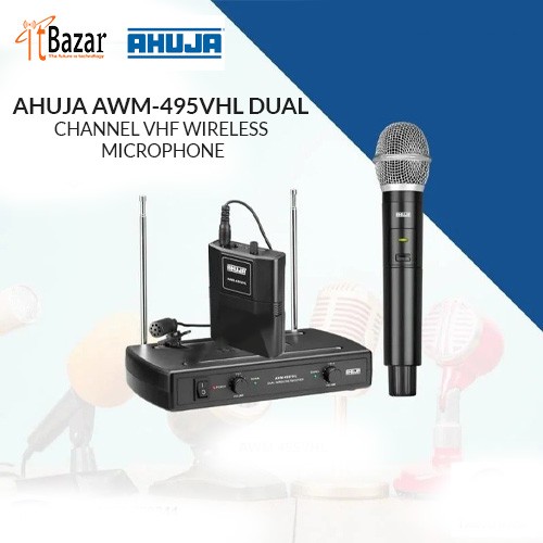 Ahuja AWM-495UHL wireless microphone has introduced a handheld dynamic transmitter and a bodypack transmitter to work on every 2 x 1.5V AA pencil cell. With this microphone connector, the balanced audio output from each channel is different. This microphone has an internal antenna on the transmitter and two telescopic antennas on the receiver for clear and distortion-free reception. Ideal for PA applications, stages and auditoriums, stadiums, seminar halls, places of worship, recreation centers.