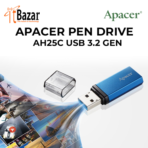 The Apacer AH25C 64GB USB 3.2 Gen 1 Ocean Blue Pen Drive is a practical and stylish storage device. It provides reliable storage and quick access to your files.