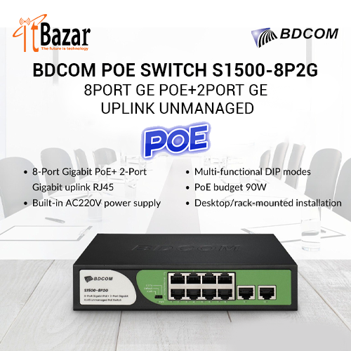 BDCOM POE SWITCH S1500-8P2G 8PORT GE POE+2PORT GE UPLINK UNMANAGED SWITCH