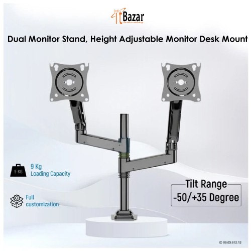 Dual Monitor Stand, Height Adjustable Monitor Desk Mount ডুয়াল মনিটর স্ট্যান্ড