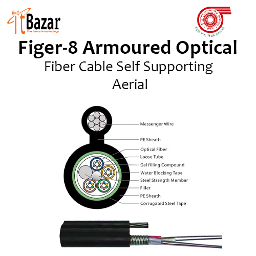 Figure 8 drop with steel wire strand 12 fiber also called Aerial Steel Wire Fig8 FTTH Drop Cable, is designed for outdoor use along utility poles. This optical cable contains seven 0.33mm intertwined Glvanized steel wire/steel wire strands. It is self-supporting and does not need to be tied to external slings, which greatly saves cost and space.