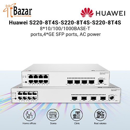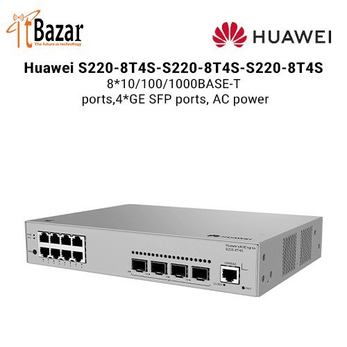 Huawei Cloud Managed Switch S220-8T4S-S220-8T4S-S220-8T4S(8*10/100/1000BASE-T ports,4*GE SFP ports, AC power