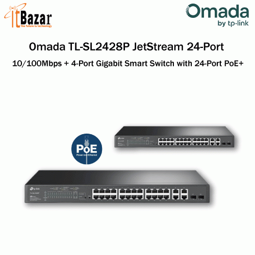 Omada TL-SL2428P JetStream 24-Port 10/100Mbps + 4-Port Gigabit Smart Switch with 24-Port PoE+