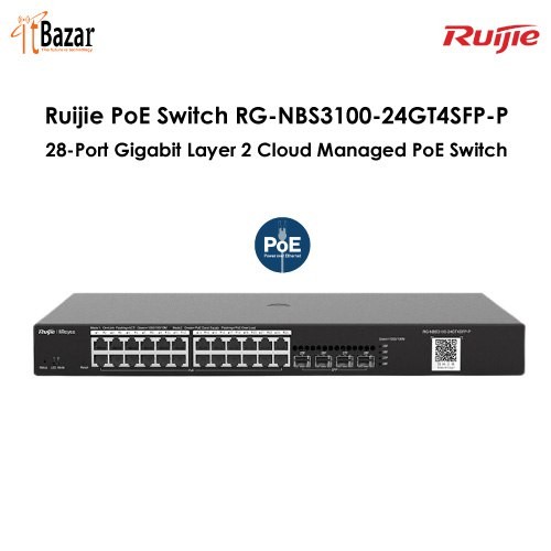 Ruijie PoE Switch RG-NBS3100-24GT4SFP-P, 28-Port Gigabit Layer 2 Cloud Managed PoE Switch রুইজি ২৪পোর্ট ম্যানেজড পি.ও.ই সুইচ (পাওয়ার ওভার ইথারনেট )
