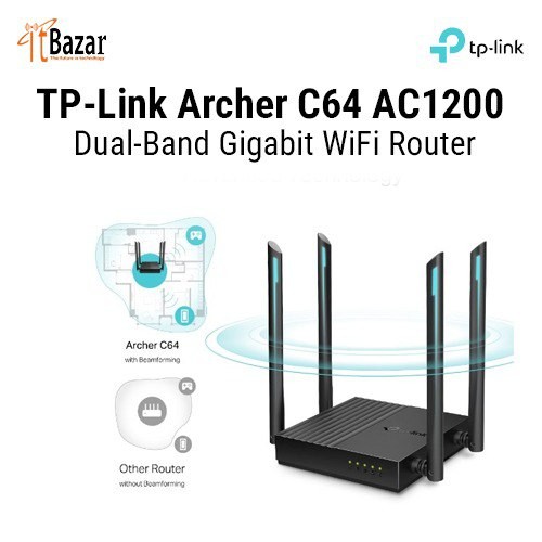 TPLink Archer C64 AC1200 Dual Band Gigabit WiFi Router টিপিলিংক গিগাবিট রাউটার সি ৬৪ ডুয়াল ব্যান্ড