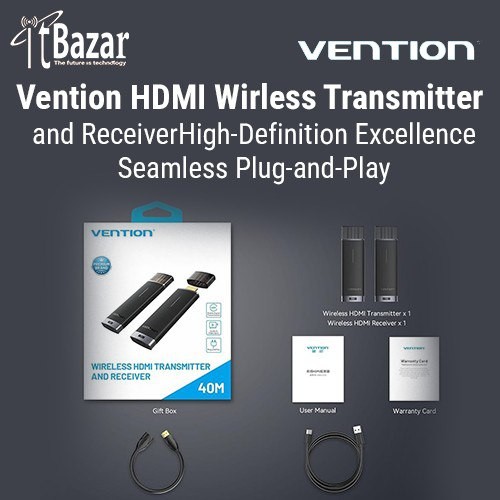 Vention HDMI Wirless Transmitter and Receiver ভেনশন এইচ.ডি.এম.আই ওয়্যারলেস ট্রান্সমিটার এন্ড রিসিভার। ক্যাবল ছাড়া কানেক্ট করুন H.D.M.I ডিভাইস HD কোয়ালিটি