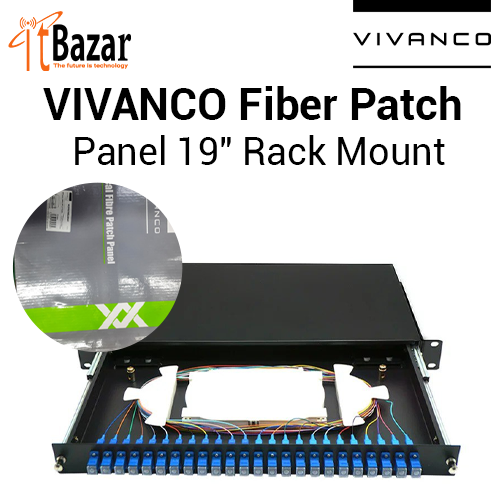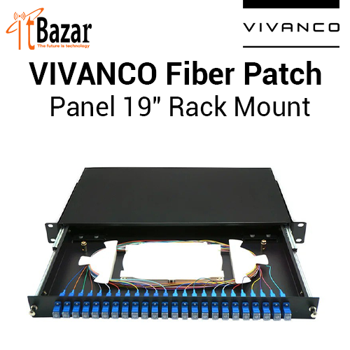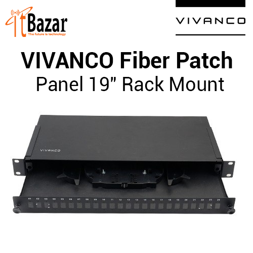 Fiber patch panel, 19”, 1RU, 24 ports, SC/LC adaptors unloaded, splice tray included, black
