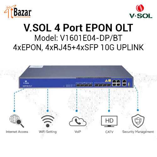 V-SOL V1601E04-DP/BT series EPON OLT products are 1U height 19 inch rack mount products. The features of the OLT are small,