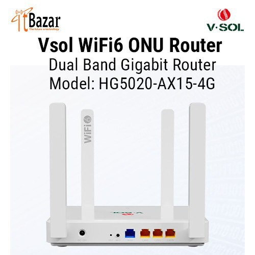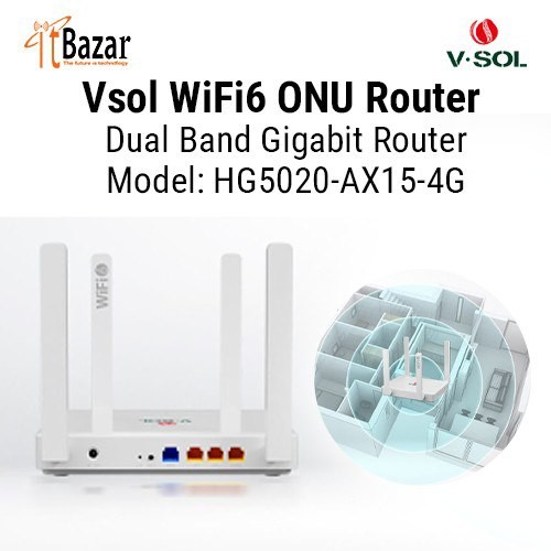 Vsol AX1500 WiFi6 ONU Router Dual Band Gigabit Router ভি.সল এক্স ১৫০০ ডুয়াল ব্যান্ড এবং ডুয়াল মোড অনু রাউটার